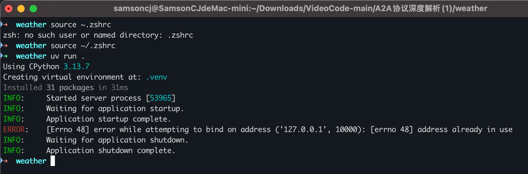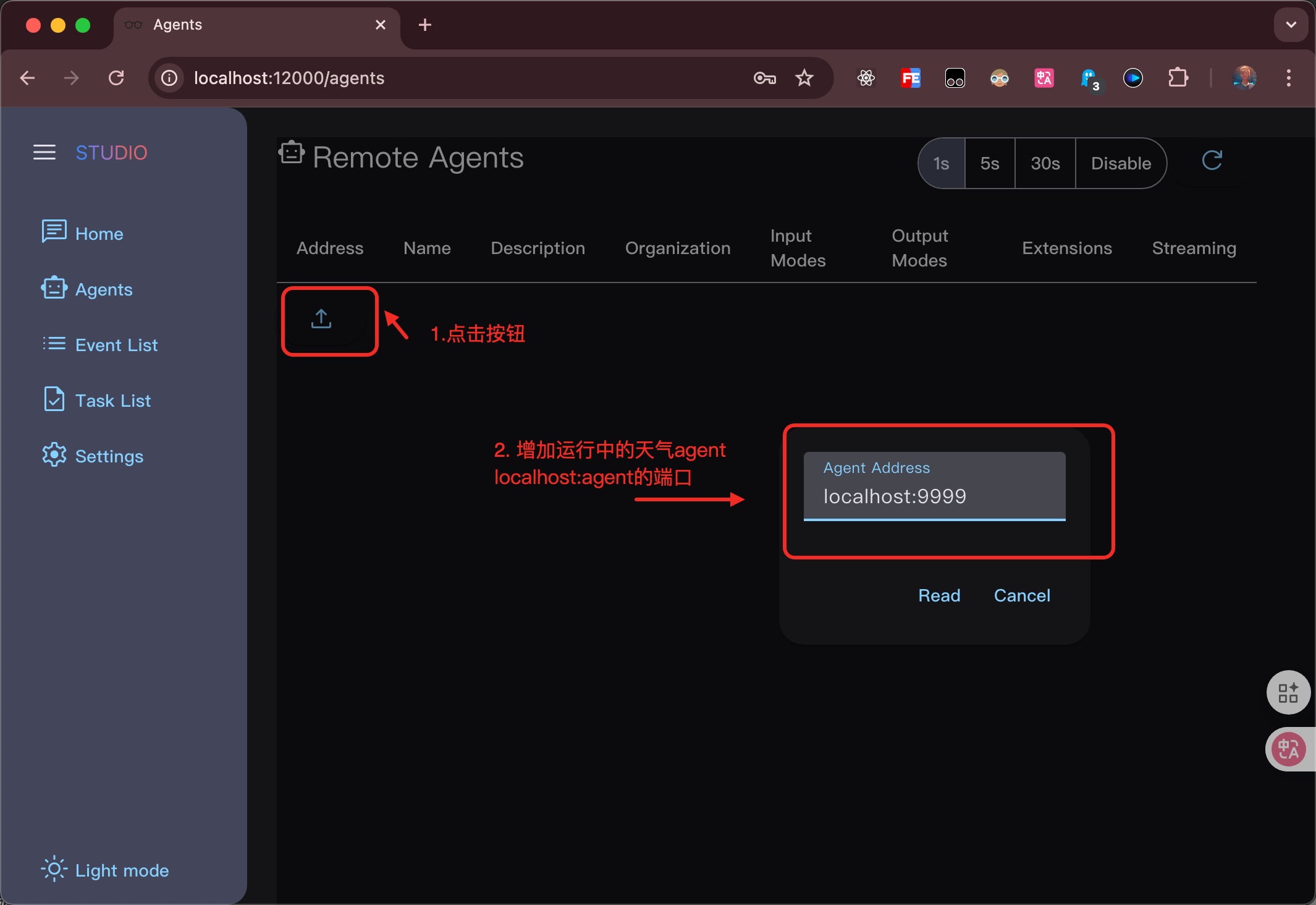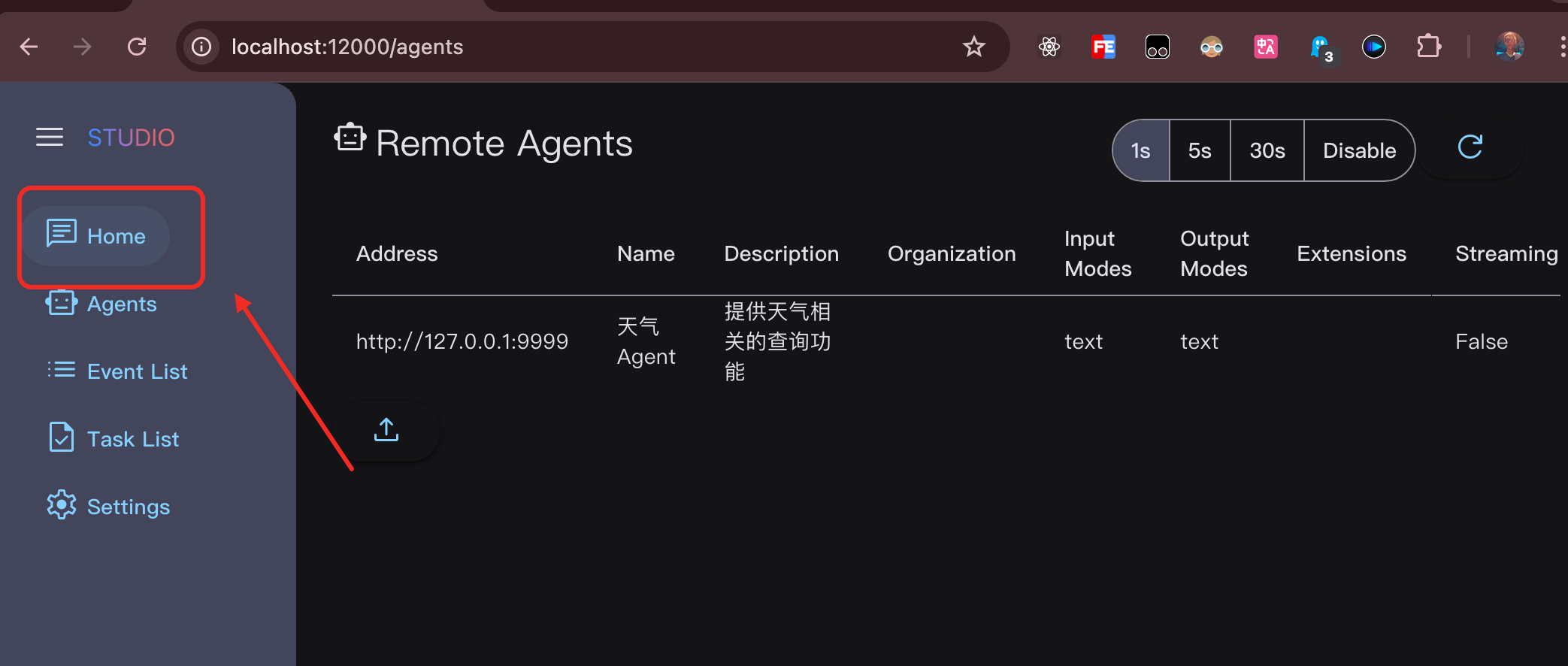 启动好 weather Agent 之后,下一步我们就要启动用于调度的Agent了。